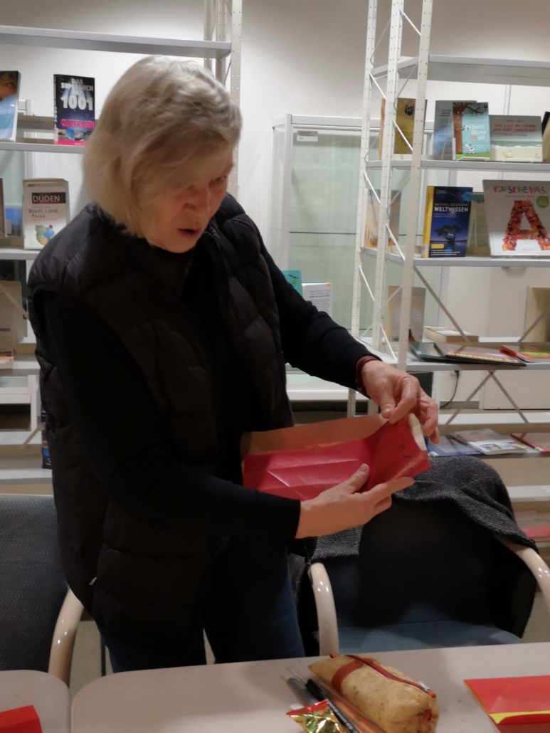 Wir falten für das chinesische Neujahrsfest. Es bricht an das Jahr der Schlange.